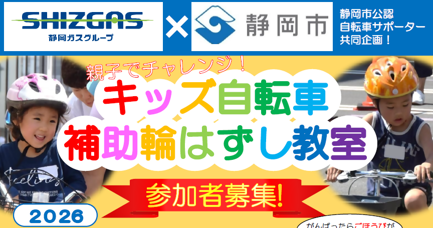 静岡ガス主催 キッズ自転車補助輪はずし教室を開催します!(令和8年5月23日 土曜日)